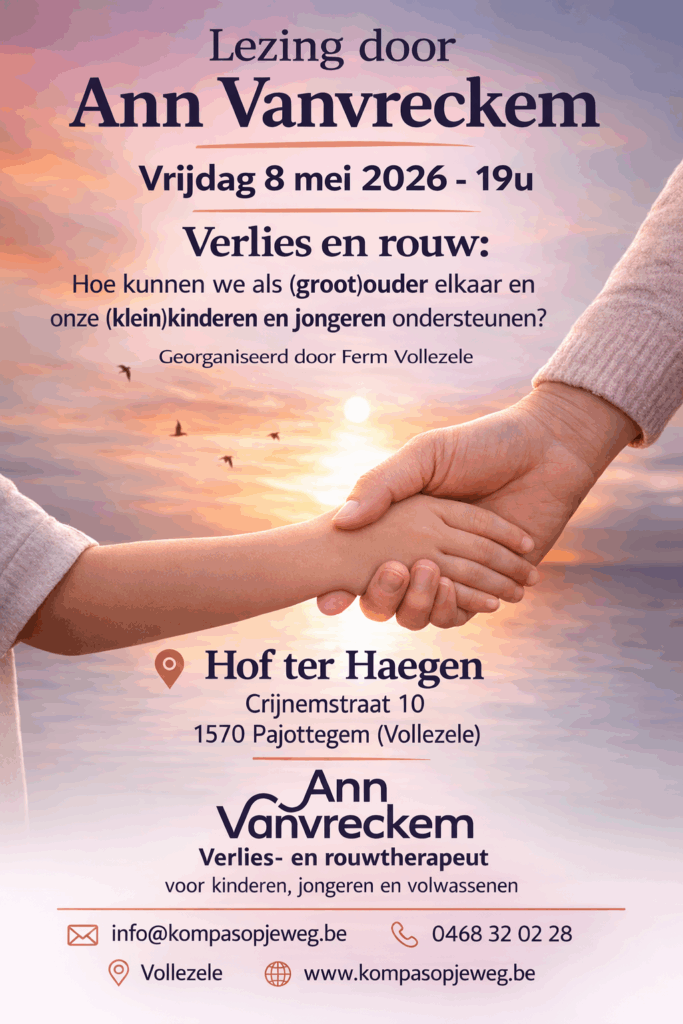 Naast individuele begeleiding geef ik ook lezingen rond verliessituaties en hoe je daar op een ondersteunende manier mee kan omgaan. In deze lezingen sta ik stil bij wat verlies kan betekenen voor kinderen, jongeren en volwassenen, en hoe je er zelf mee kan omgaan of als omgeving steun kan bieden.